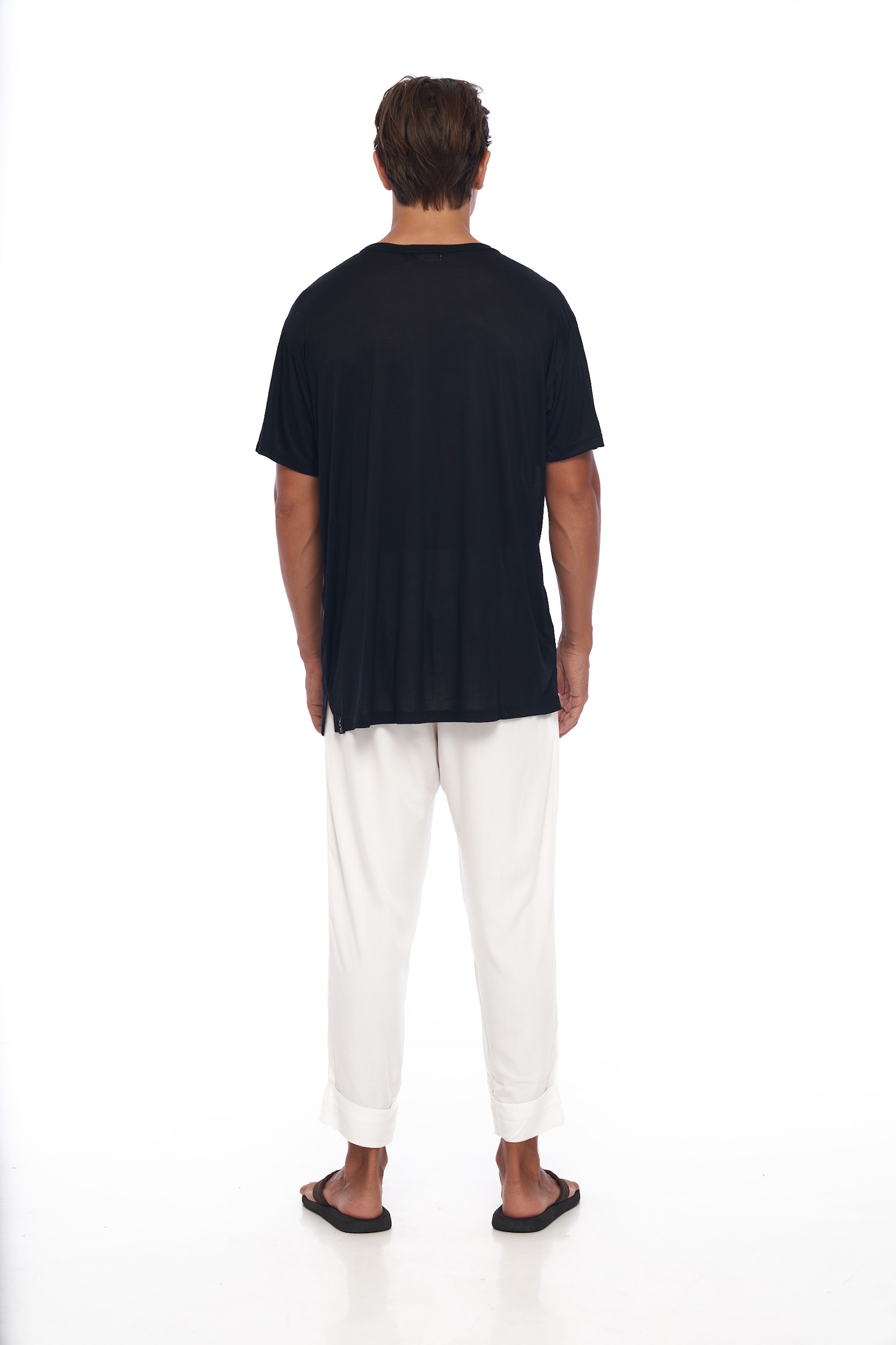 Camiseta cómoda, cenefas con detalle cruz espalda y cuello holgado. Mangas al codo y talle largo.
